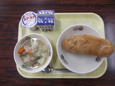 ○きなこ揚げパン ○野菜のスープ ○ヨーグルト ○牛乳