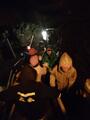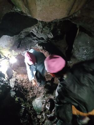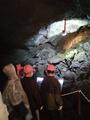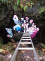 狭い洞窟内は子どもたちにとって新鮮だったようで、楽しみながら見学できました。身をかがめて頭上に気をつけて進みます。