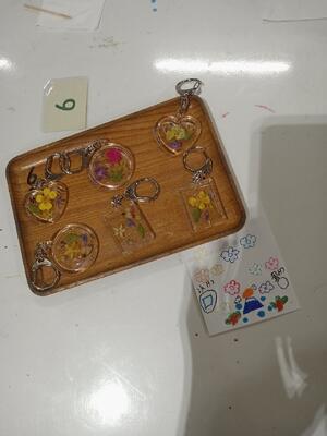 花びらや草を使ってキーホルダーを作りました。みんな心を込めて真剣に作りました!