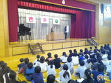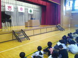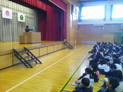 図書ボランティアによる大型絵本の読み聞かせがありました。今年のお話は「オズの魔法使い」。ドロシーと仲間たちが様々な冒険を通して、それぞれ求めてたものは実は最初から自分の中にあった、ということに気づくお話でした。児童はみんなお話に引き込まれていました。最後には図書ボランティアからしおりのプレゼントをいただき、大喜びでした。