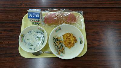 〇チキンカレーライス 〇フルーツポンチ 〇牛乳