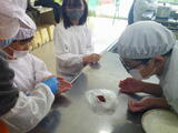5年生が桶川市の特産物を知る学習の1つとして、紅花饅頭づくりを行いました。地域の「べにっこ」さんのお手伝いを頂き、おいしく作ることができました。