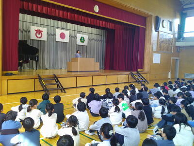 3月の全校集会・音楽集会がありました。校長先生からは、地域の方に優しく声掛けができた「6年生の話」と、3月は「一年間のまとめの月」の話がありました。
