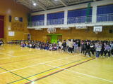 3学期の体力タイムは「リズム縄跳び」を行っています。運動委員会の手本を見て、最後まであきらめずに跳んでいました。