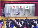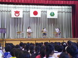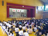 今日の児童集会は図書委員会の発表です。図書室の使い方や本の扱い方、返却期限を守ることを劇を通して伝えてくれました。司会も児童会が担当し、子供だけで堂々と集会を進行することができました。