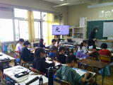 【6年生・外国語】「I want to go to ~」動画を見て、どんなことを話しているのか考えていました。
