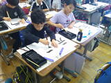 【3年生・書写】「元」を筆を立ててゆっくり丁寧に書いていました。