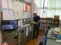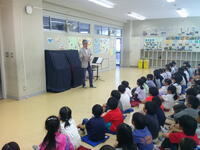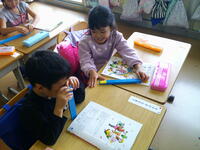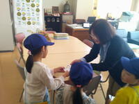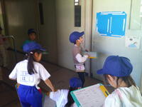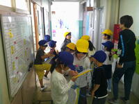 生活科の学習で、1・2年生が学校探検をしました。2年生が1年生の案内役として手をつないで学校を探検しました。校長室や職員室、図書室や保健室など教室に入るときには「失礼します。」と元気よく言うことができました。まだ、入学して1カ月ですが、日々成長を感じます。