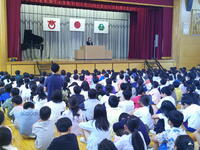 音楽集会では、「健康には心と体」が結びついているというお話がありました。歌声を響かせることで心が温かくなり、健康になることを児童は聞いて、心を込めて今月の歌の「校歌」を全校で歌うことができました。