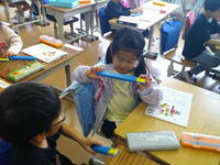 【1年 算数】「10はいくつといくつ」問題を出し合っています。