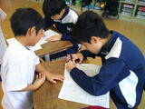 本日から3日間、社会体験チャレンジ事業として1年・3年・ニコニコ学級に桶川東中の生徒が職場体験にきています。朝のあいさつ運動や授業の補助、休み時間には小学生と一緒に遊んであげていました。