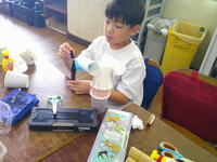 【2年生・図工】「ふたりはなかよし」紙コップや紙つつを使ってどんな二人組をつくろうか考えながら制作しました。