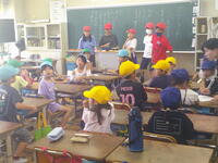 避難訓練を行いました。今回は地震の後、給食室が火災になった場合を想定して訓練を行いました。暑さ対策で避難後はオンラインに切り替えて校長先生の話や救助袋体験の様子を教室で視聴しました。