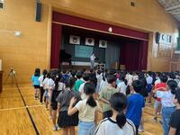 7月の全校集会がありました。校長先生からは「キャッチボール」について話がありました。