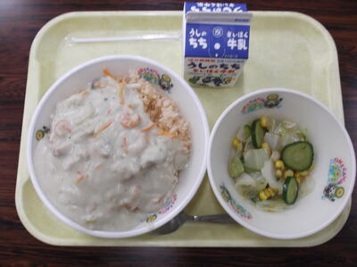○パプリカライスクリームソースがけ ○ビーンズサラダ ○牛乳