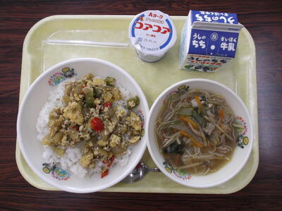 〇ガパオライス 〇ビーフンスープ 〇ヨーグルト 〇牛乳