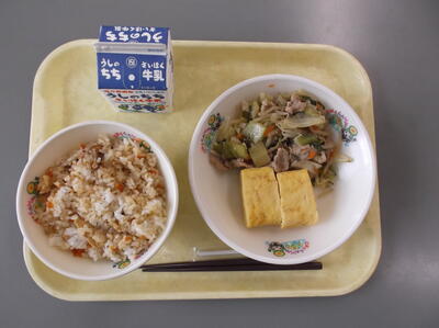 ○チャーハン ○魚のお茶フライ ○切り干し大根のスタミナ炒め ○牛乳