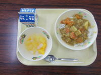 〇豆乳カレーライス 〇フルーツポンチ 〇牛乳