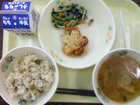 〇ご飯 〇さばの味噌かけ 〇おひたし 〇すまし汁 〇牛乳