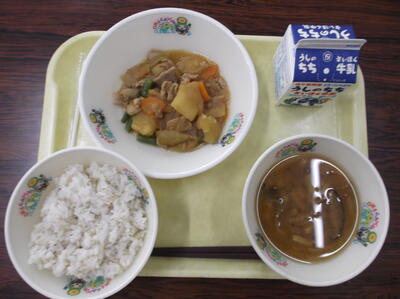 ○二十日玄米ごはん ○肉じゃが ○太陽のちからじる ○牛乳