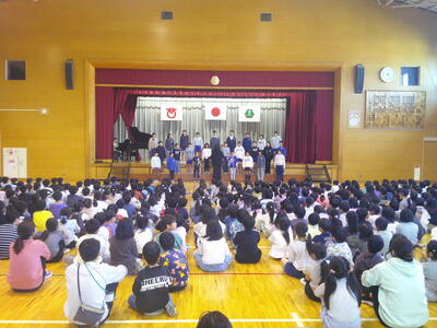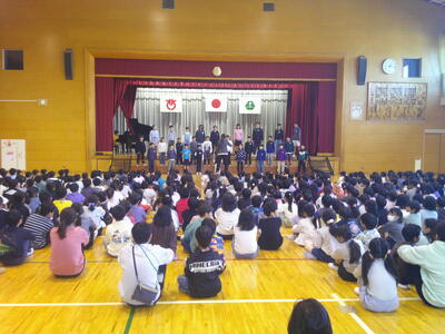 11月7日 表彰集会・市内音楽会出場クラス発表会 投稿: 管理者 (13:45) 【表彰集会】 10月に行われた市内体育大会の表彰を行いました。多くの児童が入賞しました。入賞しなかった6年生もベストを尽すことができた体育大会になりました。 【市内音楽会出場クラス発表会】 〇5年3組「COSMOS」 〇6年3組「未来へ」 Tweet -