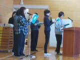 図書ボランティアによる大型絵本の読み聞かせ 投稿: 管理者 (17:55) 図書ボランティアによる大型絵本の読み聞かせがありました。今年のお話は「オズの魔法使い」。ドロシーと仲間たちが様々な冒険を通して、それぞれ求めてたものは実は最初から自分の中にあった、ということに気づくお話でした。児童はみんなお話に引き込まれていました。最後には図書ボランティアからしおりのプレゼントをいただき、大喜びでした。 Tweet -