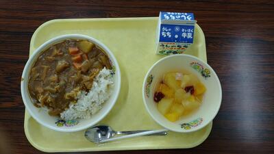 〇チキンカレーライス 〇フルーツポンチ 〇牛乳