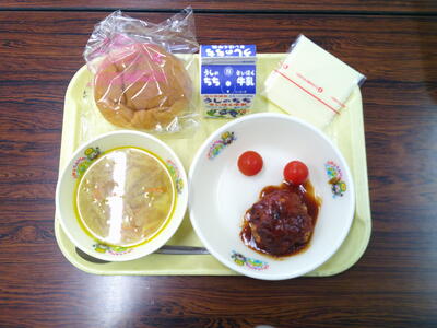 〇てづくり豆腐ハンバーグ 〇ジュリエンヌスープ 〇牛乳