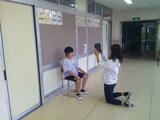 【ニコニコ学級】係ぎめや教室に掲示する写真を撮影していました。