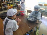 【ニコニコ学級・生活単元】 ホットケーキづくりをしました。はかりを使ってめもりを読むなど楽しいだけでなくしっかり学習しています。