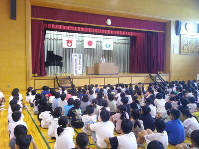 10月の全校集会がありました。校長先生からは「素敵なヒーロー」について話がありました。