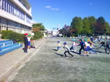 なかよしタイムがありました。風が少し強い中でしたが、子供たちは元気よく遊んでいました。ドッジボールなどは高学年が利き手の反対の手で投げてあげるなどルールを工夫していました。
