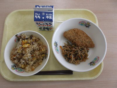 ○チャーハン ○魚のお茶フライ ○切り干し大根のスタミナ炒め ○牛乳