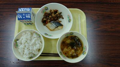 ○ご飯 ○焼き魚 ○五目まめ ○味噌汁 ○牛乳