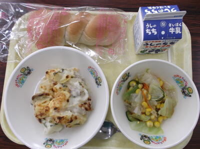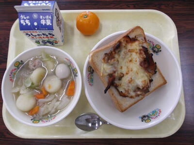○ピザトースト ○野菜のスープに ○冷凍みかん ○牛乳
