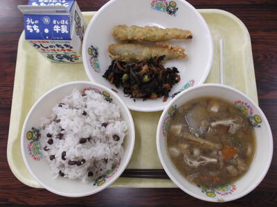 ○小豆おこわ ○ししゃもフリッター ○ひじきの炒め煮