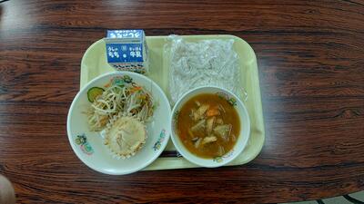 ○キムタクごはん ○パオズ ○ビーフンソテー ○牛乳